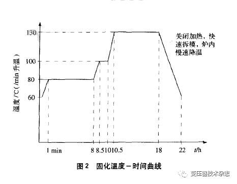 澆注好的模具必需在固化爐內依照固化溫度一時候曲線停止加熱固化。進程中,需包管固化爐內溫度平均。固化溫度~時候曲線如圖2所示。