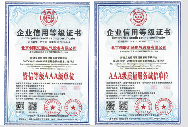 作為再次榮獲“中AAA級信用企業”成功入選企業之一,也是品牌實力、企業誠信、在行業中長期積累的必然成果。進一步明確了創聯匯通電氣自身的優勢和發展方向,并在生產經營管理中不斷的完善自我,制定科學的發展計劃,促進企業更加全面、快速、健康的發展,提升行業內競爭力。獲得該項殊榮不僅充分肯定了創聯匯通電氣的綜合實力與行業地位,而且很好地提升了創聯匯通的品牌影響力與美譽度,成為企業穩中求進發展戰略的又一有力助推器。既是對創聯匯通在變壓器領域的技術和創新能力的高度認可,也是對創聯匯通公司運營團隊共同努力和奮斗的充分肯定,更是對創聯匯通未來發展和影響力的較好證明。