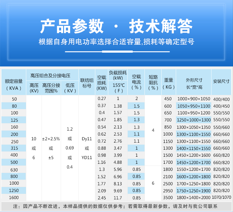 【額定容量】:50~2500kva 【額定電壓】:10/6