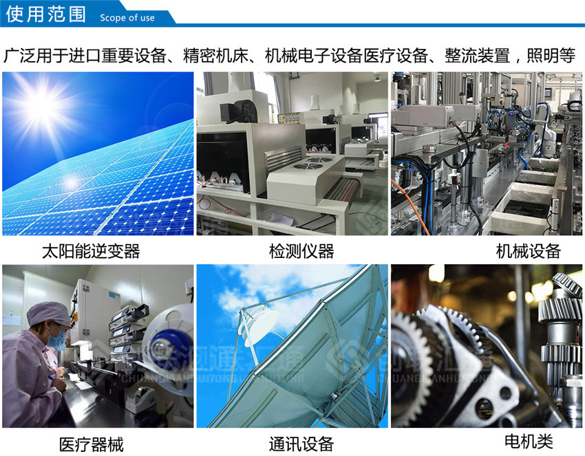 該系列隔離變壓器廣泛用于地鐵、高層建筑、機場、車站、印刷、機床、碼頭、光伏發電設備,逆變器專用,工礦企業及隧道的輸配電及進口設備的使用等場所